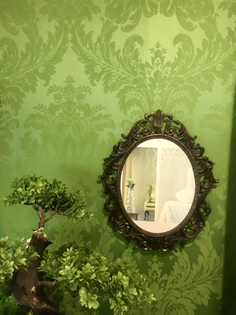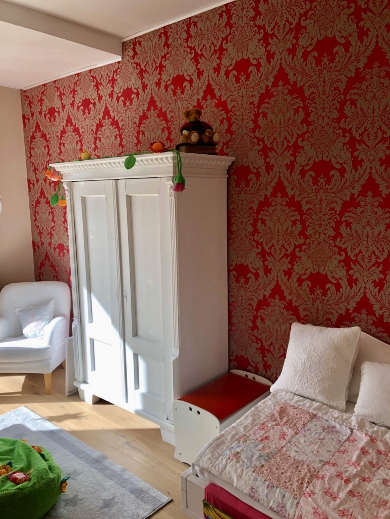 Manchmal nur mit Farbe, dann wiederum verwende ich Tapeten, Wandverkleidungen oder Wandbespannungen, um die Räume wirken zu lassen.