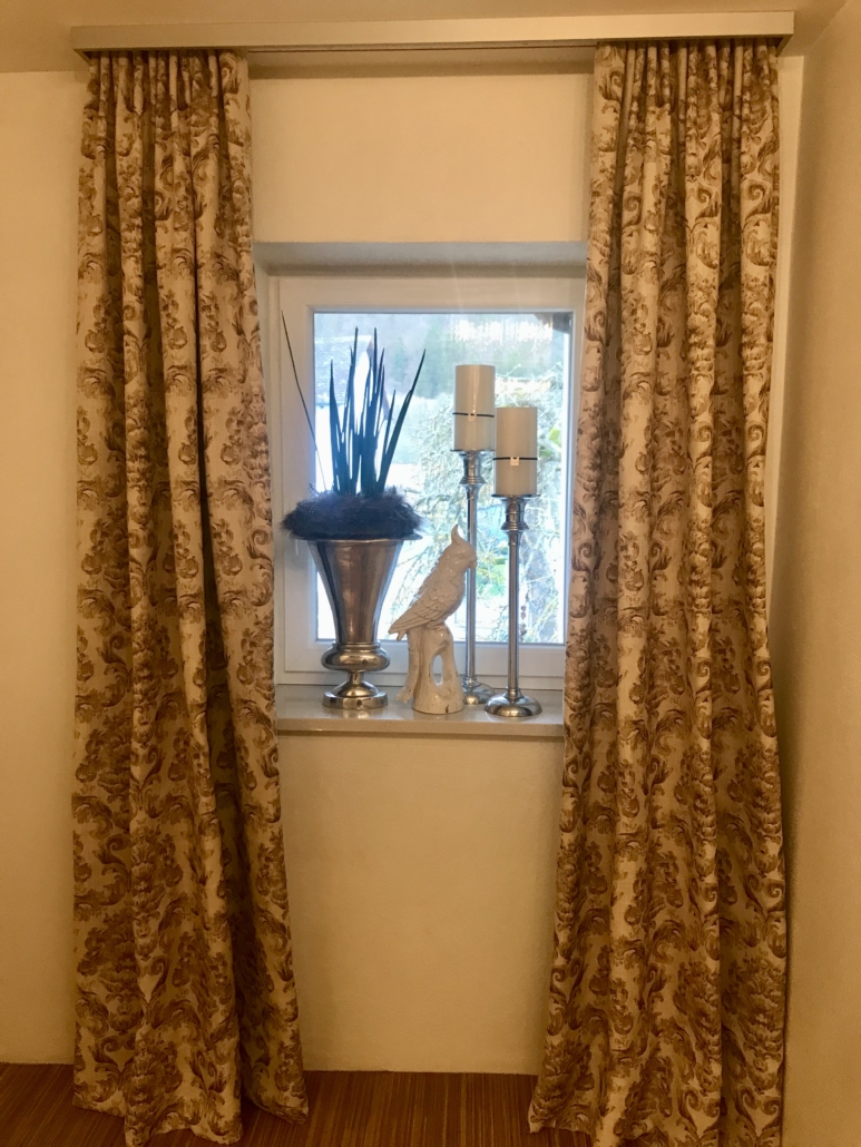 Wir finden für jeden Enrichtungsstil den passenden Fensterabschluß und den dazu passenden Vorhangstoff in meinem Geschäft.